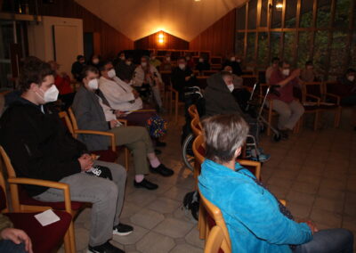 In der Zoar-Kapelle auf dem Inkelthalerhof in Rockhausen wurde traditionell St. Martin gefeiert. Natürlich unter Berücksichtigung aller notwendigen Corona bedingten Schutzmaßnahmen. Im Licht der selbstgebastelten Laternen war die Zoar-Kapelle an diesem Abend ein Ort der Zusammenkunft und des gemeinsamen Gebets. Bereit sein zum Teilen, das ist die Botschaft des Martinstags. Denn das Leben des Heiligen Martin war von Mitgefühl und Erbarmen für Schwächere geprägt. In der Zoar-Kapelle wurde der Martinsgeschichte aufmerksam gelauscht. Der dazugehörige Weckmann war diesmal eine Weckbrezel. Alle Teilnehmer freuten sich sehr über dieses Geschenk.