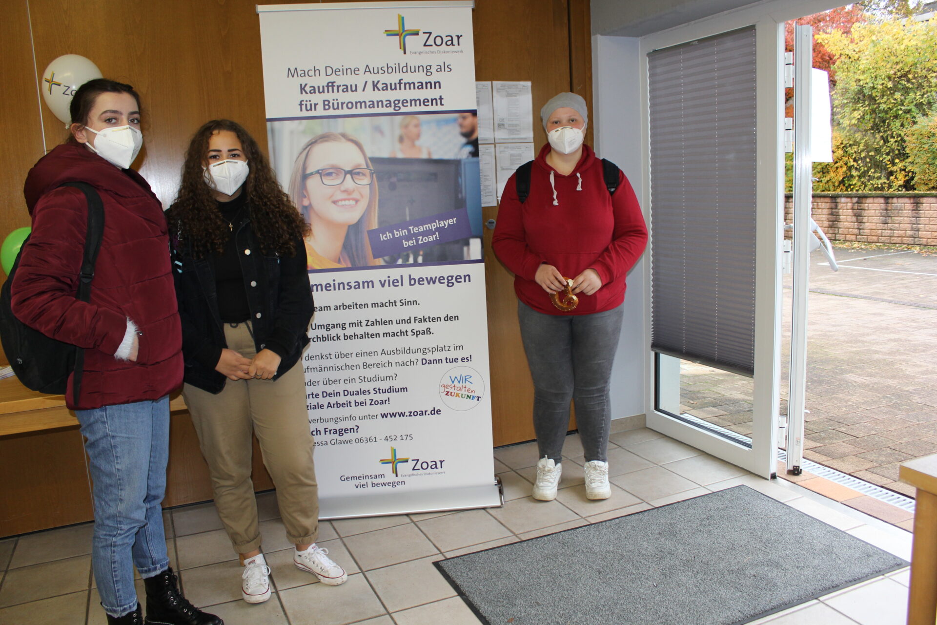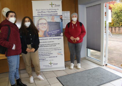 Tag der Ausbildung mit „Job Aktiv“ beim Evangelischen Diakoniewerk Zoar auf dem Inkelthalerhof in Rockenhausen. 29 Schüler mit ihren Lehrern nahmen teil. Ein großer Erfolg! Sie kamen vom Wilhelm-Erb-Gymnasium Winnweiler, der BBS Rockenhausen und Eisenberg, der Realschule plus Winnweiler, der Realschule plus Rockenhausen und der IGS Rockenhausen. Bei der Veranstaltung zum Thema Ausbildung konnten sie sich über drei Ausbildungsberufe informieren: Kaufmann/-frau für Büromanagement, Pflegefachfrau/Pflegefachmann und Heilerziehungspfleger/-in. Besonders Berufe in der Pflege bieten Aufstiegschancen und eine sichere Anstellung. Die Schüler interessierten sich sehr für alle vorgestellten Berufe und gingen mit vielen Infos „im Gepäck“ nach Hause. Bei weiteren Fragen ist der Zoar-Personalservice immer gern Ansprechpartner.
