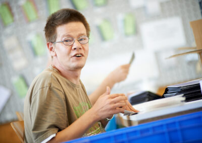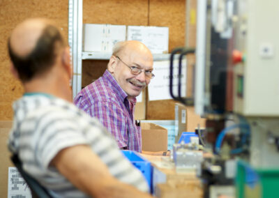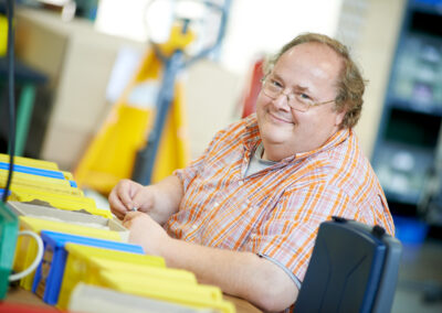 Wir verfügen über eine große Anzahl ausgelagerter Werkstattarbeitsplätze in Betrieben des allgemeinen Arbeitsmarkts, die im besten Fall zu sozialversicherungspflichtigen Anstellungen, zum Beispiel über das Budget für Arbeit, führen.