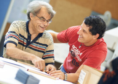 Neben den industriellen Fertigungsbereichen gibt es Arbeitsangebote zum Beispiel in den Bereichen Qualifizierung und Arbeit: