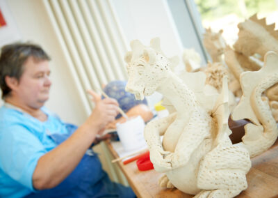 - Fertigung von Eigenprodukten (zum Beispiel Holz, Keramik, Deko-Artikel