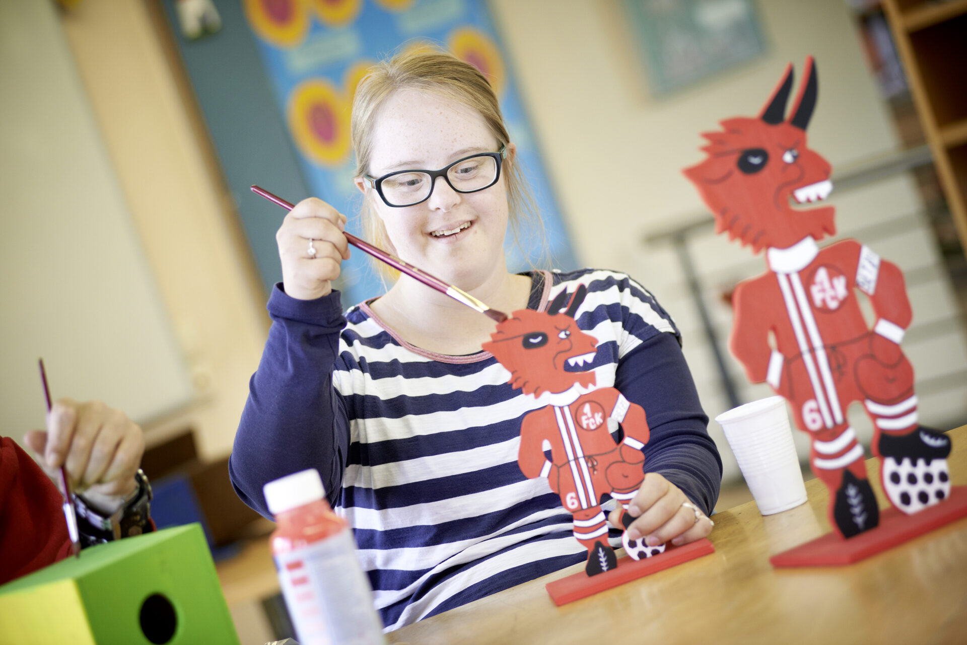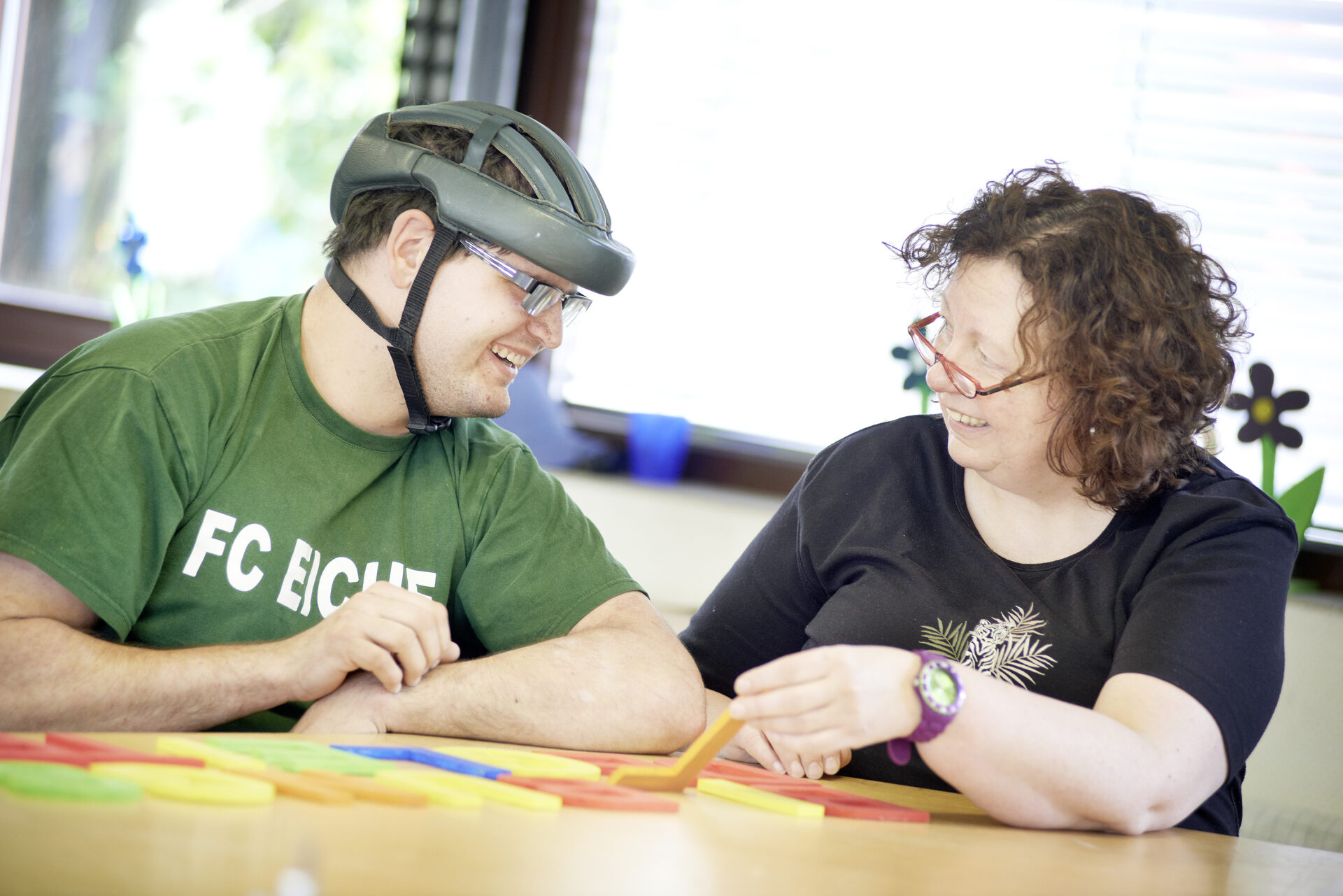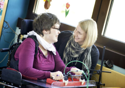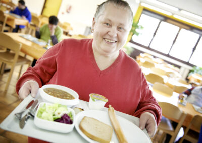 In der Tagesförderstätte, die sich unter dem „verlängerten Dach“ der Werkstatt befindet, werden mehrfachbehinderte Menschen betreut, die zur Entfaltung ihrer Persönlichkeit und zur Bewältigung ihrer Lebensbedingungen der intensiven Hilfe und Begleitung bedürfen und nicht / noch nicht /nicht mehr in der Lage sind, in einer Werkstatt für behinderte Menschen tätig zu sein.